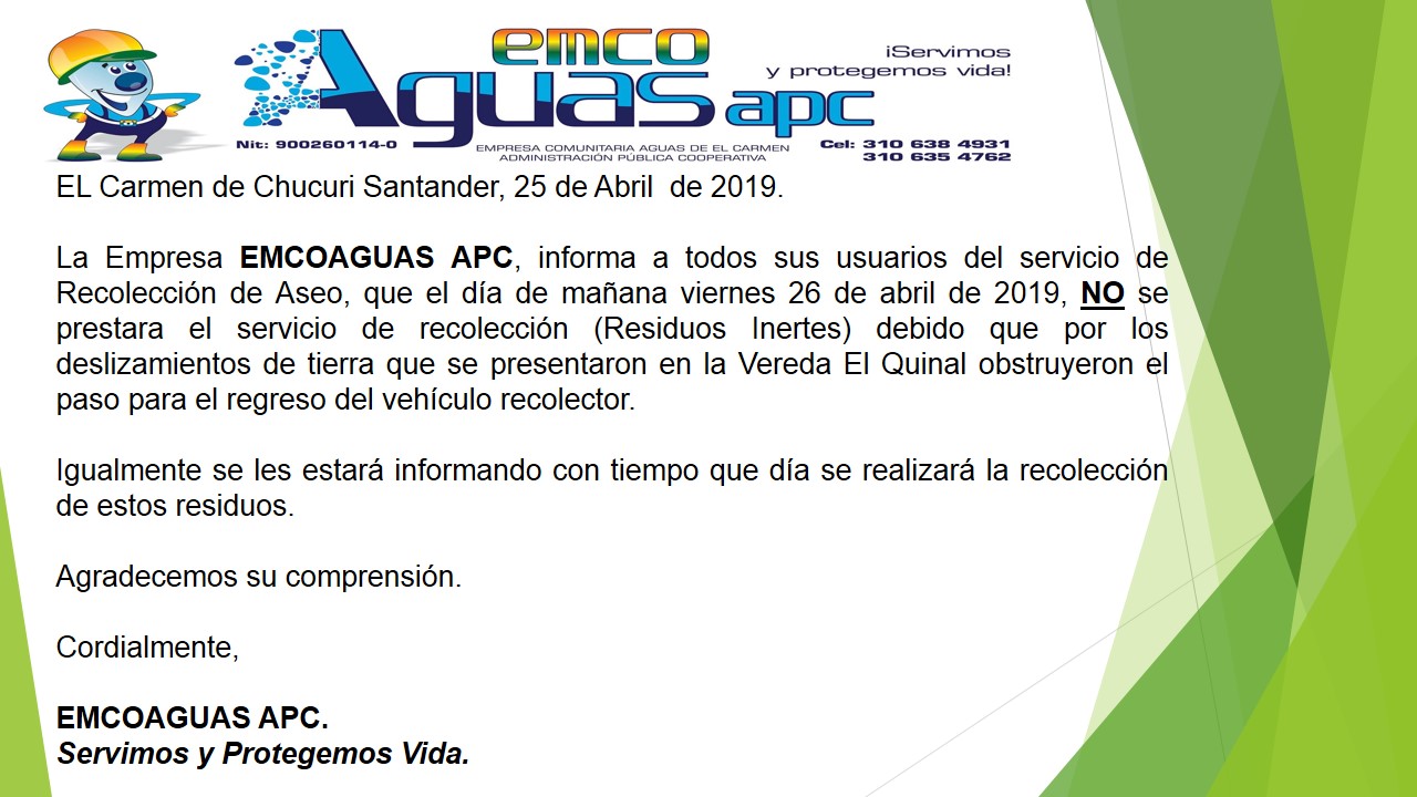 EMPRESA COMUNITARIA AGUAS DE EL CARMEN ADMINISTRACIÓN PÚBLICA COOPERATIVA – EMCOAGUAS APC