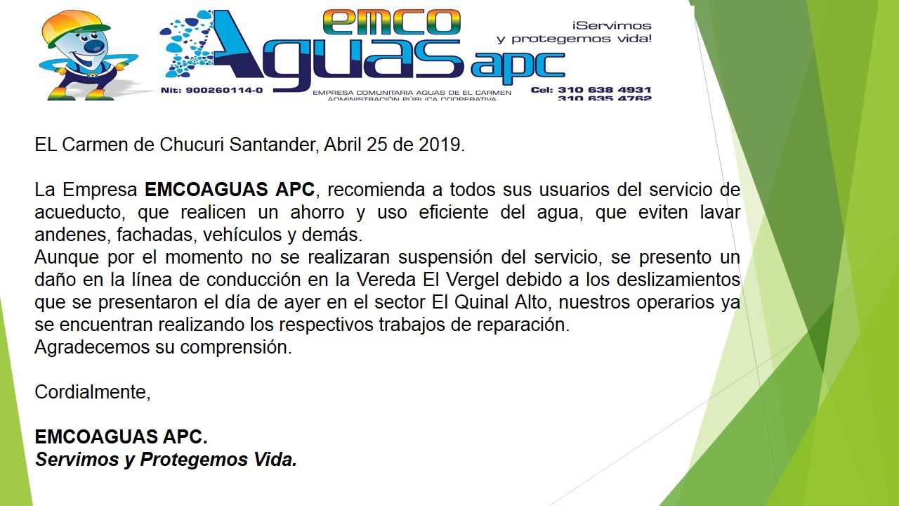 EMPRESA COMUNITARIA AGUAS DE EL CARMEN ADMINISTRACIÓN PÚBLICA COOPERATIVA – EMCOAGUAS APC