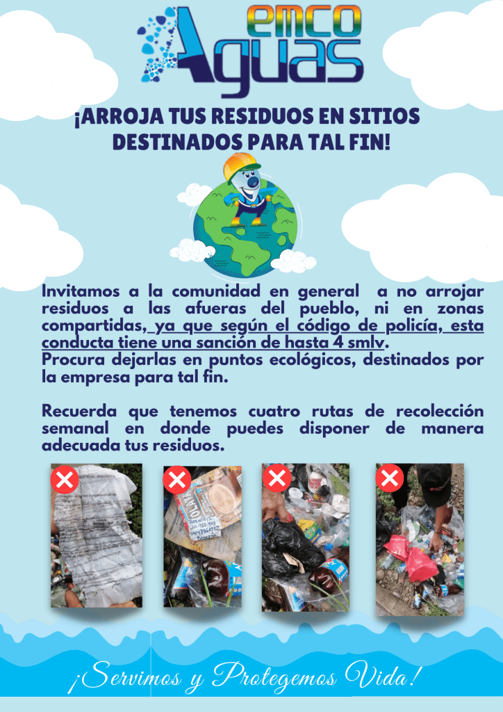 Emcoaguas Apc CUENTA CON CUATRO RUTAS DE RECOLECCIÓN SEMANAL, DONDE PUEDEN DISPONER SUS RESIDUOS CORRECTAMENTE Y SIN GENERAR CONTAMINACIÓN, SOBRE TODO EN PREDIOS DE NATURALEZA PRIVADA.
