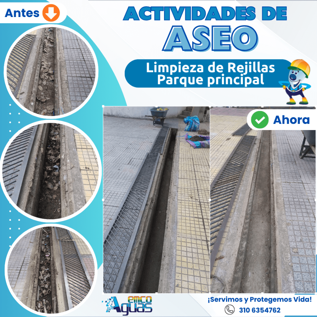 12 noviembre, 2025 emcoaguaseditor ACTIVIDADES LIMPIEZA DE REJILLAS Actividades de Limpieza Nuestro equipo de trabajo el día Martes 11 de noviembre realizó labores de limpieza y retiro de residuos en las rejillas del parque principal, garantizando un espacio más limpio y seguro. Emcoaguas APC ¡Servimos y Protegemos Vida! Comparte esto: Compartir en X (Se abre en una ventana nueva) X Compartir en Facebook (Se abre en una ventana nueva) Facebook Compartir en WhatsApp (Se abre en una ventana nueva) WhatsApp Me gusta Cargando... Relacionado