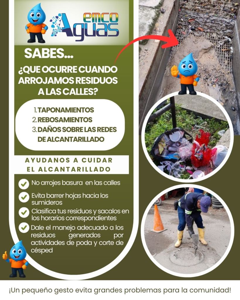 Cuando arrojamos basura🪰, grasas o materiales indebidos a las alcantarillas, se generan taponamientos 🚨y rebosamientos que afectan la salud🤕, el ambiente y la calidad de vida de todos.