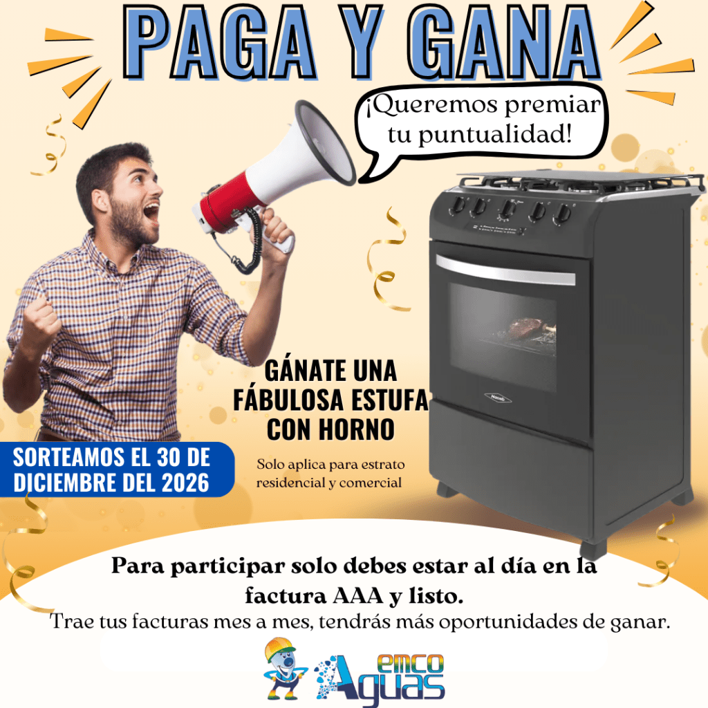 Emcoaguas premiará la puntualidad de los usuarios con el sorteo de una Fábulosa Estufa con Horno . 🥳