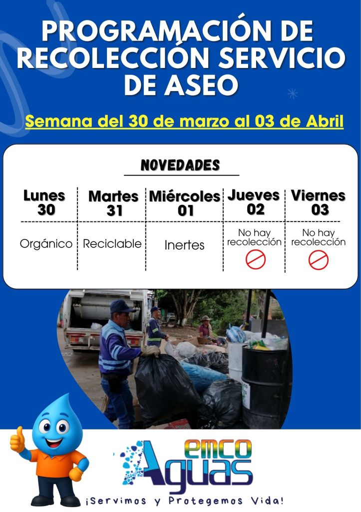 Los días jueves y viernes no habrá recolección ni servicio de atención al cliente.